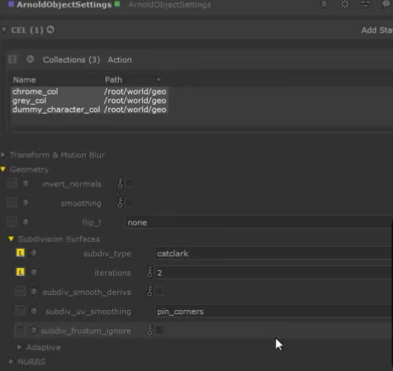 同样的objectsetting可以通过custom 路径命令,指定对应的collection进行对应的参数设置,比如细分,置换等各种参数。