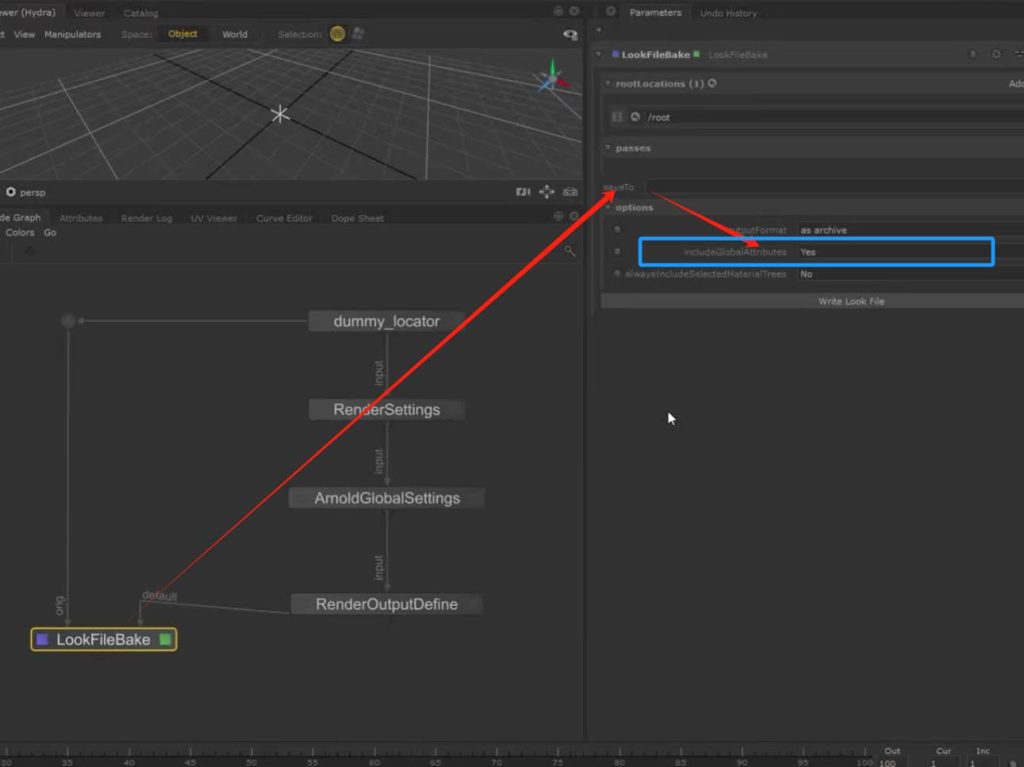 而在look filesbake节点中的rootlocation 路径定义十分重要,其决定了katanalookfilesbake节点应用于哪部分物体层级之下的装配组装。:,放在在root会在主层级下搜查匹配组装信息的模型源头进行修改输入源的组装。