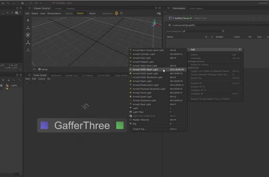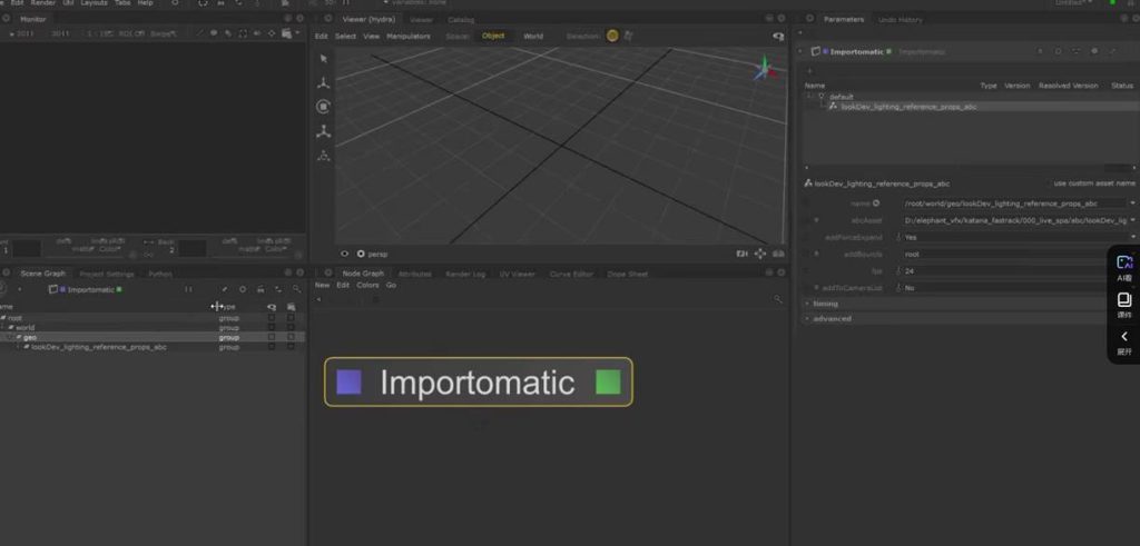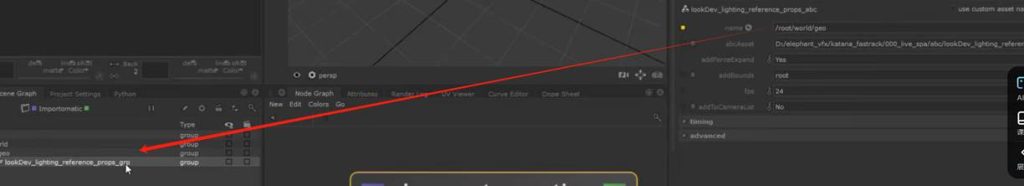 通过引用之前第一节创建的live_light_rig节点,导入其进入katana工程:,其是一种模板,可以随意修改与分享
