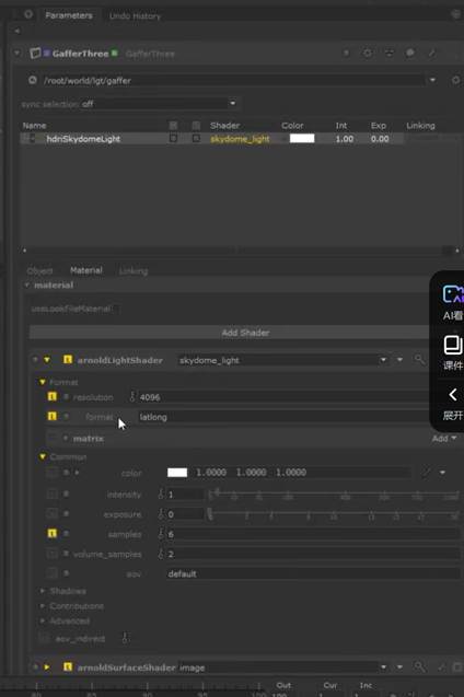domelight的材质格式设置为latlong。分辨率设置为4k4096