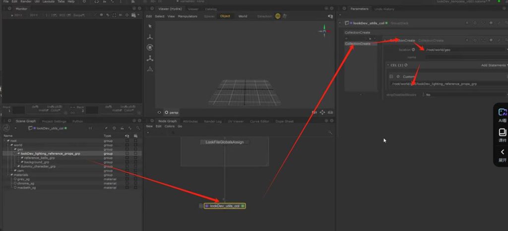 或者创建groupstack等群组节点来进行组的创建。可以参考katana Renderman的相关官方工程文件进行对应的学习。