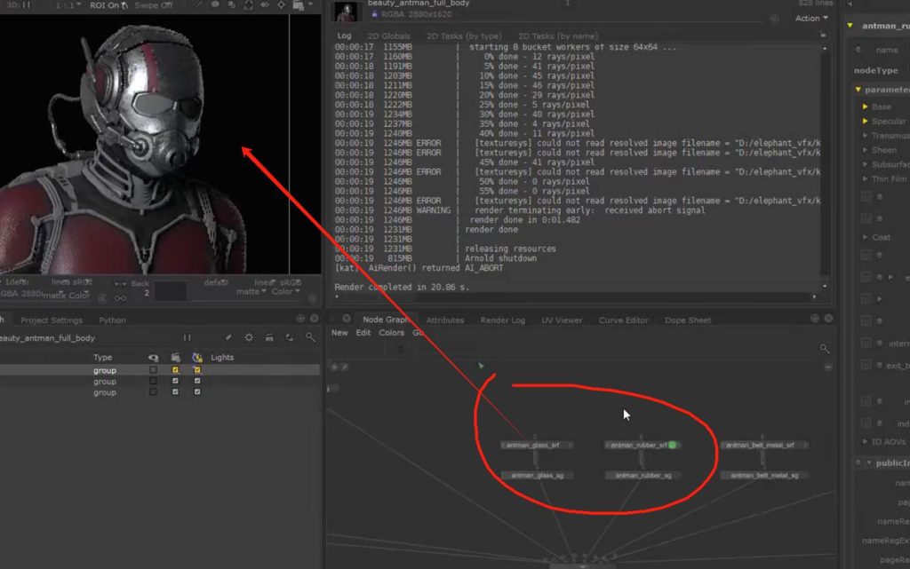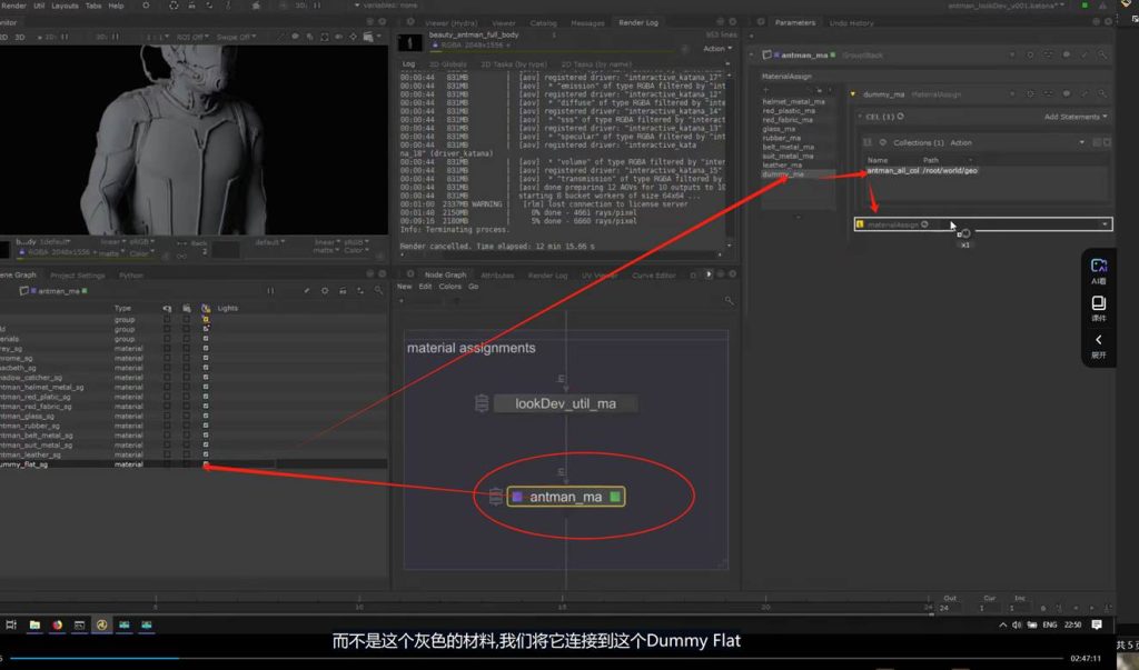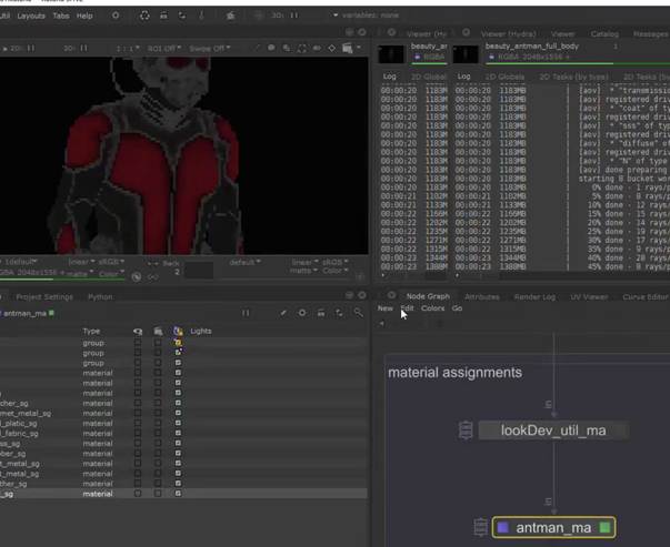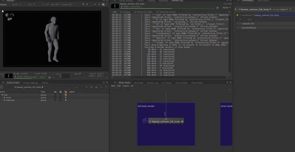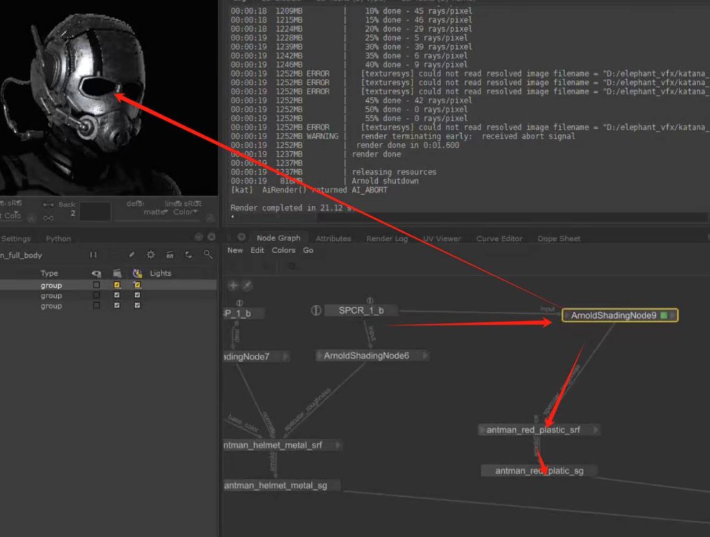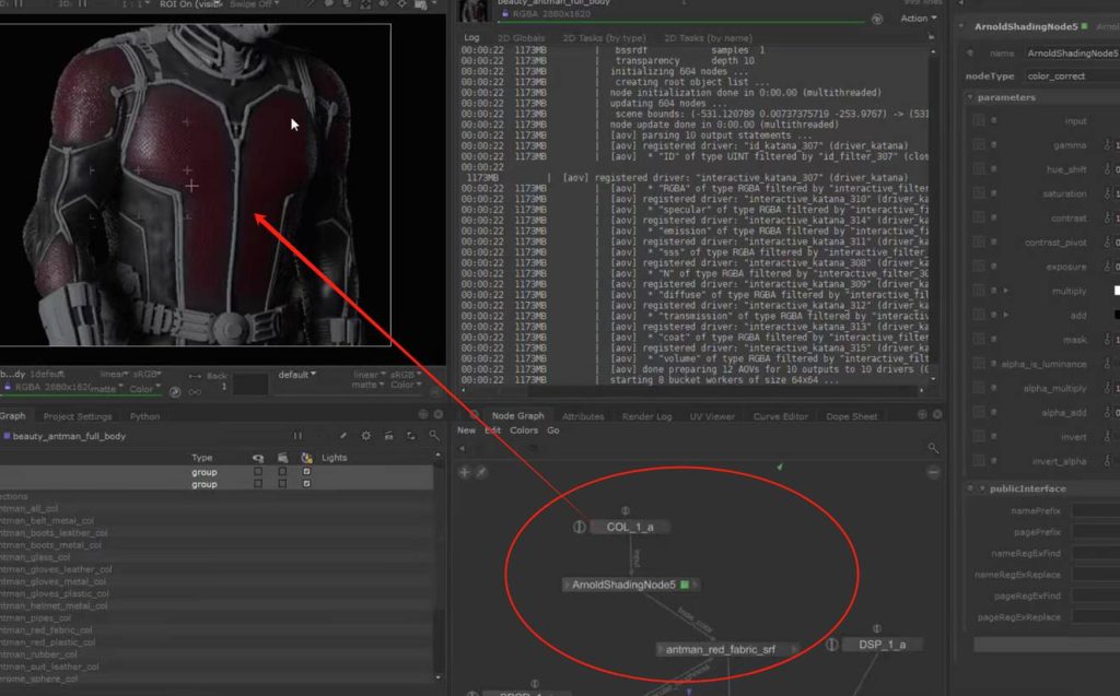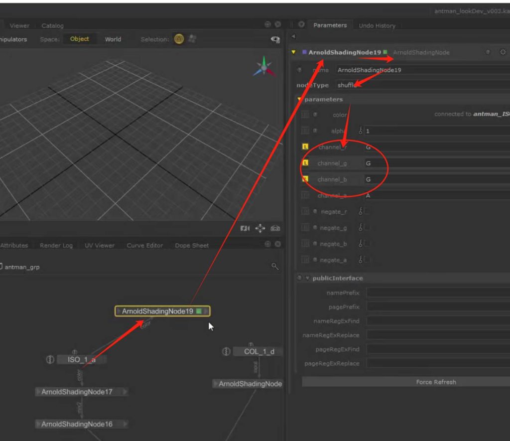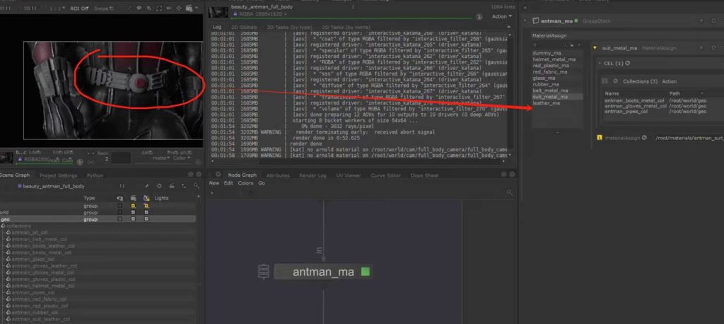 如果想要保持节点连接的整体可观性,可以使用teleport节点进行对节点连接线的隐藏自定义显示,又或者我们可以使用goupstack将不同的材质球节点group打组到一个节点中进行包装(参考KA Renderman 工程文件示例):