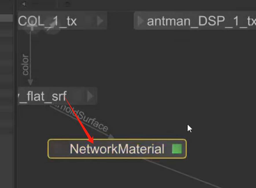 再添加networkmaterials节点。类似于材质球区节点的链接方式:
