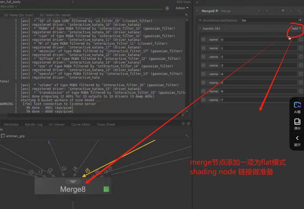 解决办法是通过创建merge节点进行简单的合并,在这之前而是需要 创建一个新的Arnold shading node,更改模式为flat,选择一个纹理输出为color out: