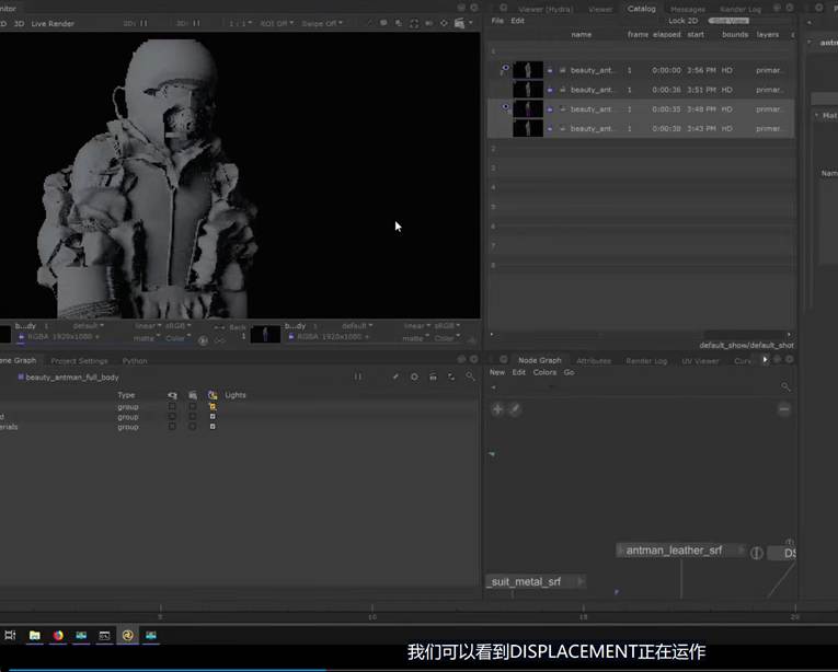 Materials network需要创建displacement终端材质接口,这样置换贴图才能识别: