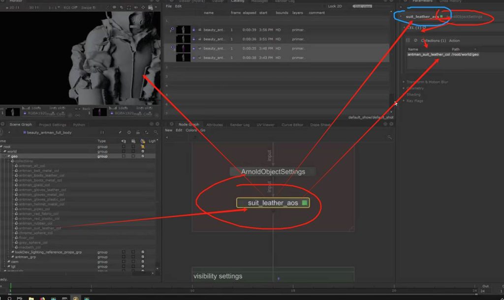 如果涉及到复杂的模型或者场景文件,会有多个arnold object setting 或者其他collection,materials assign等等等,按alt g 可以打包为  satck打组: