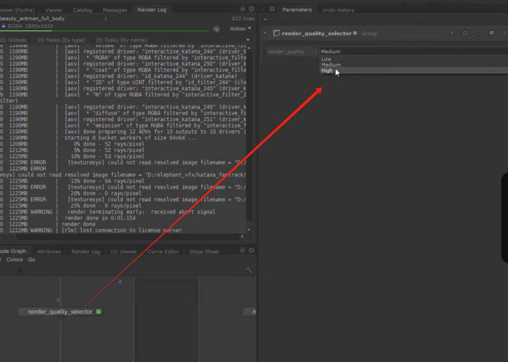 最后在渲染阶段我们利用quality selector 工具选择high高参数进行渲染: