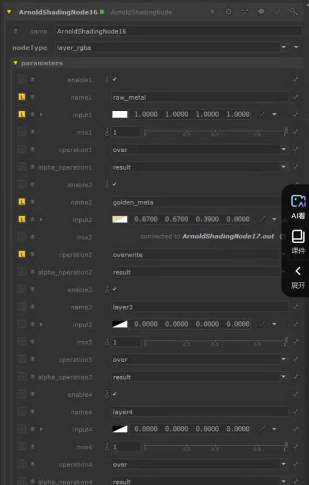 注意,arnoldshadingnode同样具有mix shader或者吗,mix rgb的模式,类似于其他dcc软件: