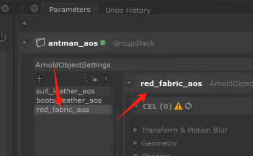 然后直接在stack中创建新的身体部分的Arnold object setting:
