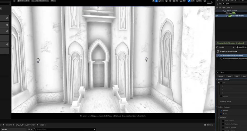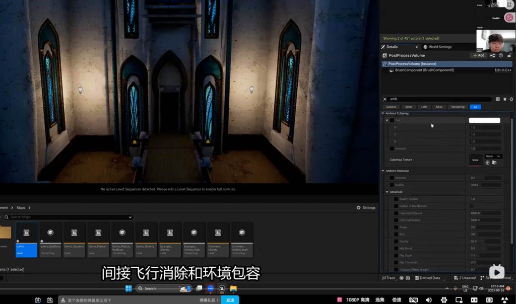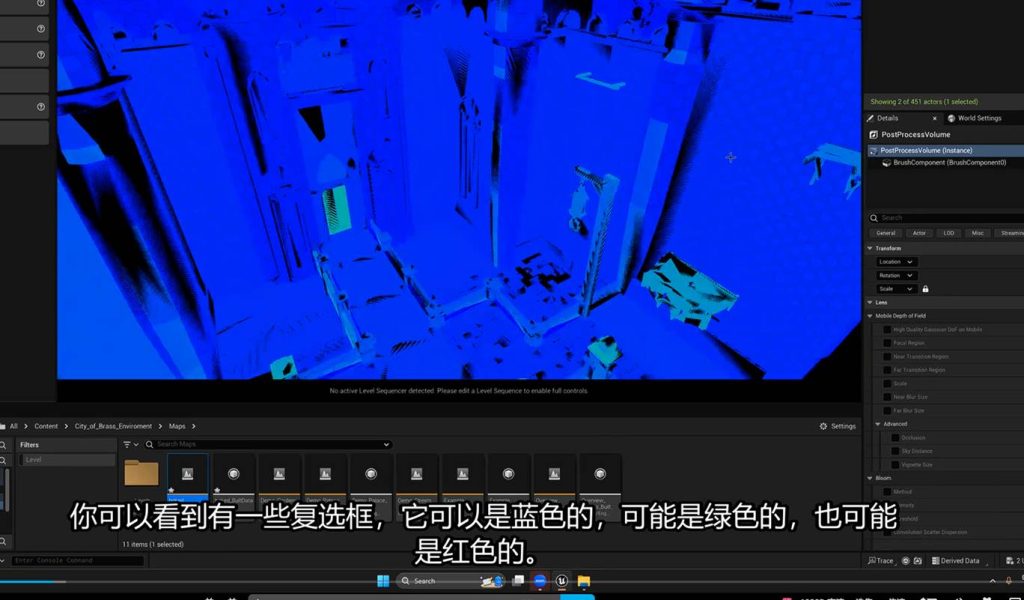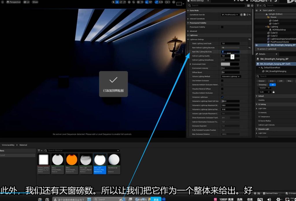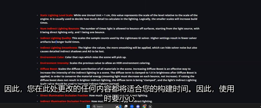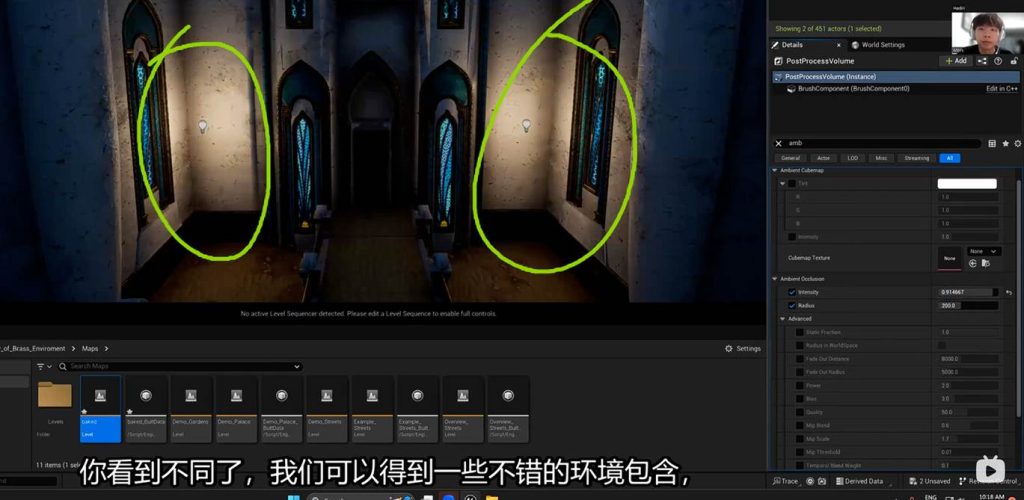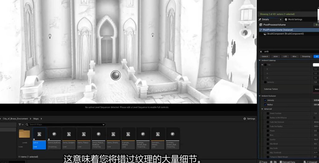 这意味着在后期盒子中调节间接光的亮度参数,可以不经过烘焙直接启动效果,这意味着我们可以在这个地方进一步优化GI(一号)的间接光烘焙的灯光贴图,也就是light mass。