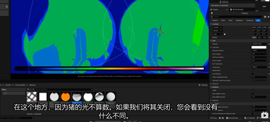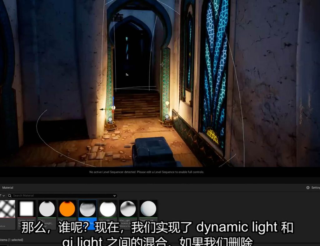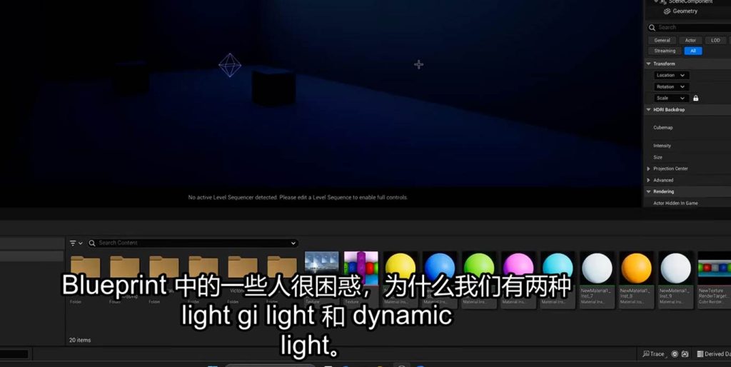 这节理论解释1号 大范围静动模式的点光源充当大范围的GI灯, 2号 小范围无阴影投射的动态点光源用于处理交互区域的gi灯 这两个灯存在的必要性: