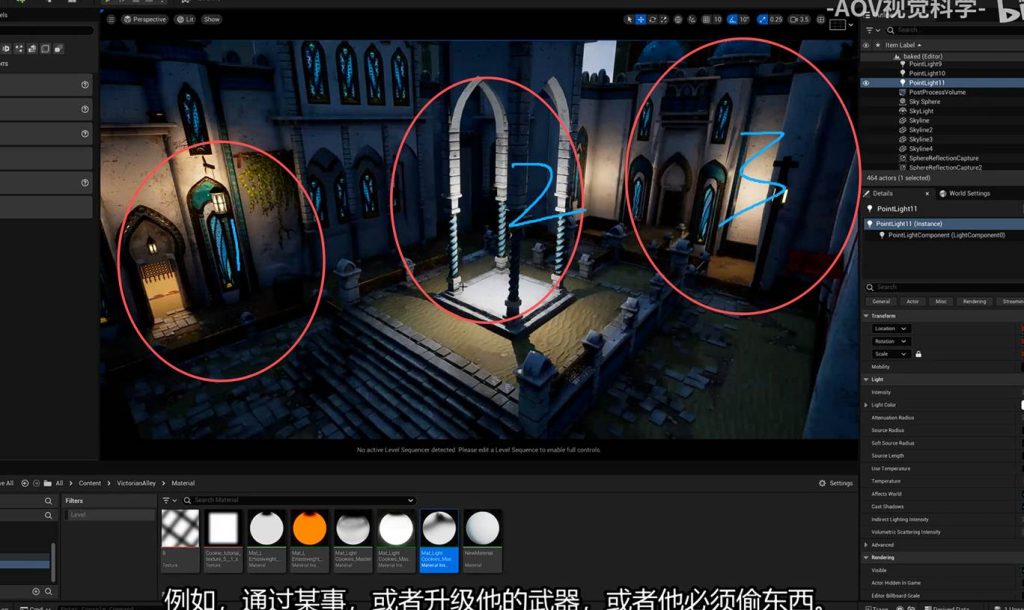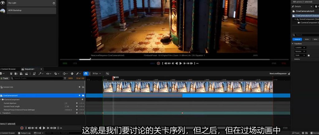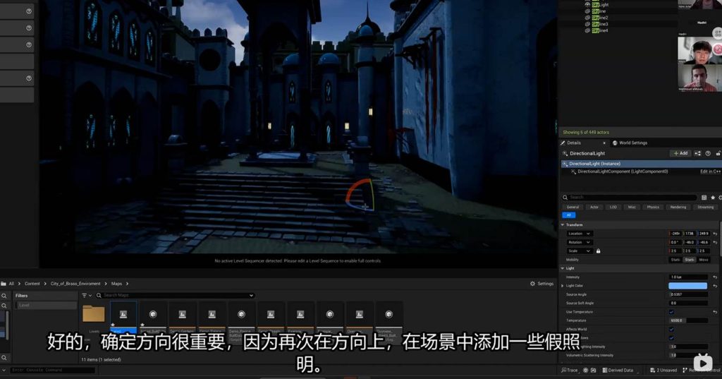 而在游戏引擎中,也分为关卡灯光和过场动画的影视灯光,通常来说,关卡灯光是玩家游玩的区域布置的灯光,而过场动画的灯光往往是以影视灯光的思路铺设,而过场灯光也通常是触发的机制来启动的,这意味着只有当玩家触碰到交互区域或者开启了特定的关联事件的时候,过场灯光才会以序列器的形式出现在过场区域中,当玩家离开这个区域后,这个区域的灯光又会退回到关卡灯光的形式,仅仅保留基本的123号灯光流程。