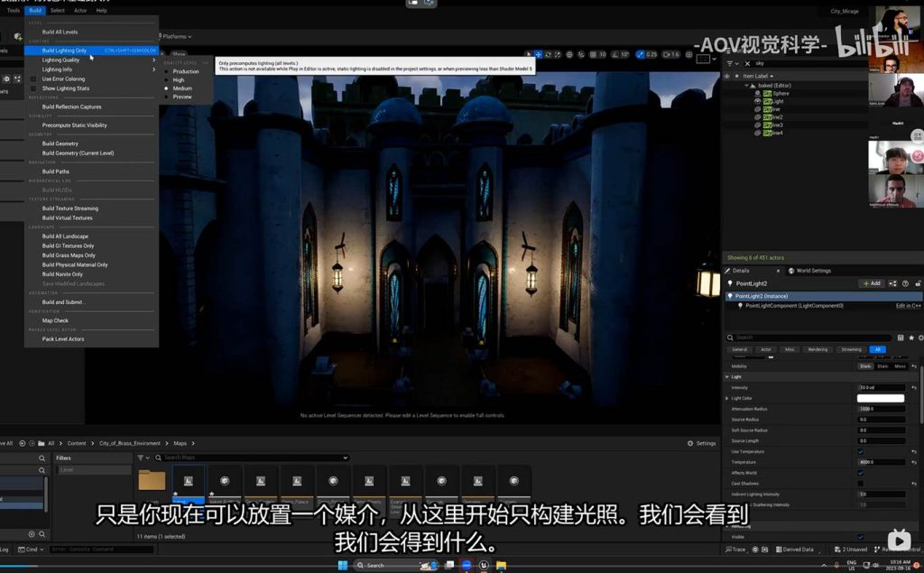 当然,更改成更高精度分辨率的light mass贴图质量的话,也意味着这需要更高的计算机成本去计算: