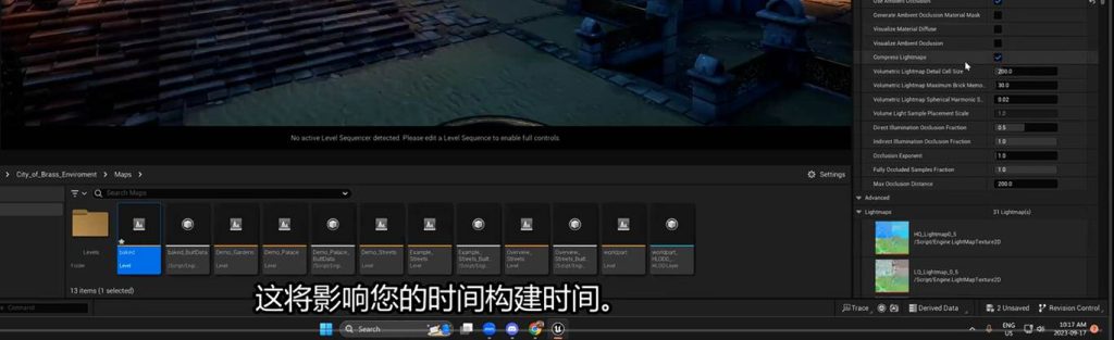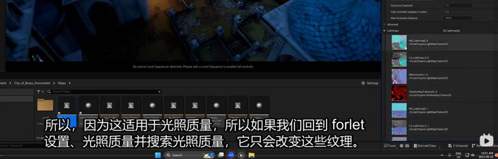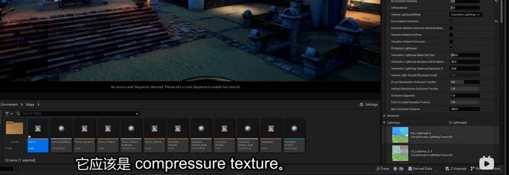World setting中保存的light mass 光照贴图,也保存了烘焙的灯光贴图: