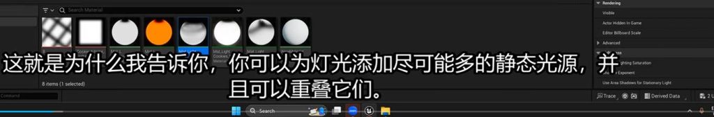 那么在这一点还有一个需要注意的就是GI灯可以烘焙,但是反射类的灯光材质表现是无法烘焙的: