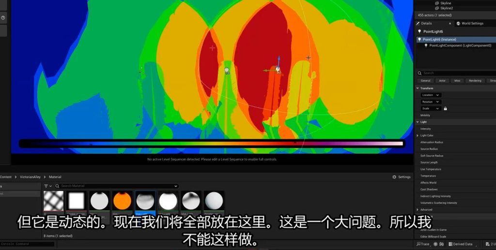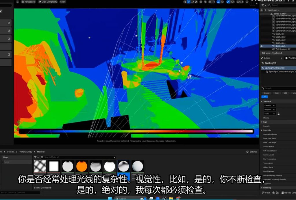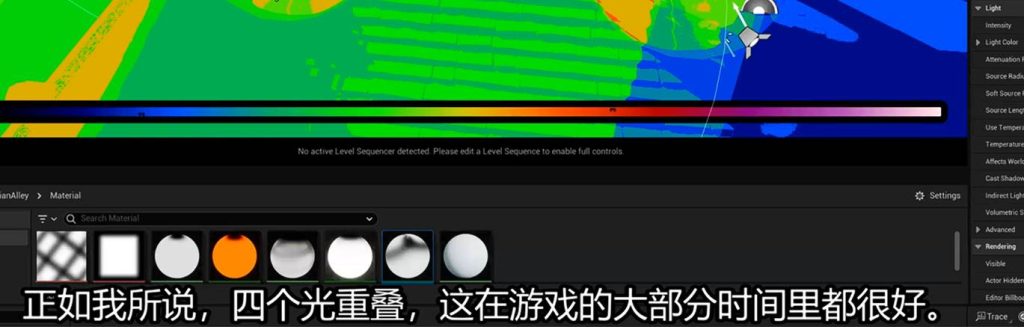 如果场景中的动态灯光重叠在complexity density viewer中的开销计算数量小于项目限制的话,理论上加上烘焙以及静动混合灯光数量,我们可以拥有很多个: