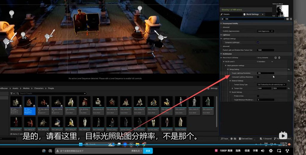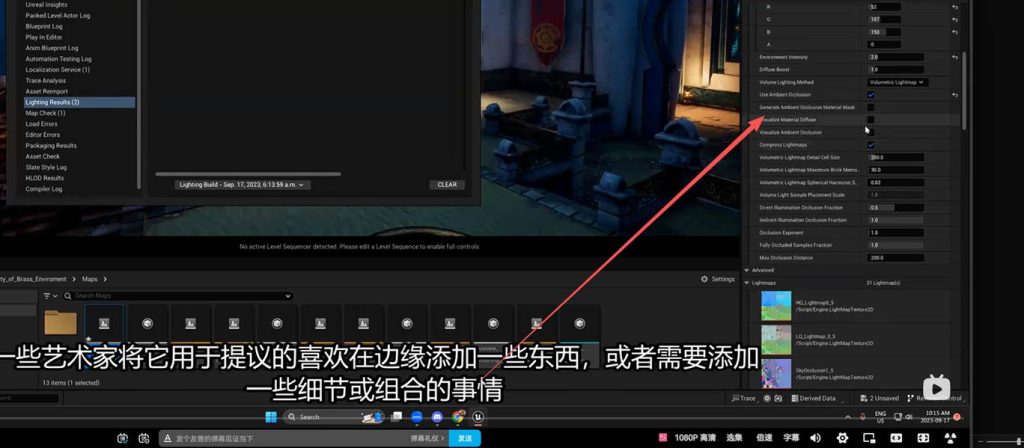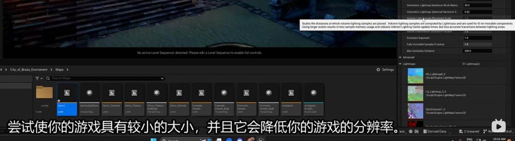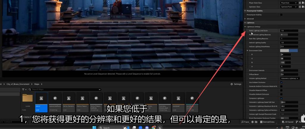 不要忘记world setting中关于 light mass 的烘焙纹理的质量数值: