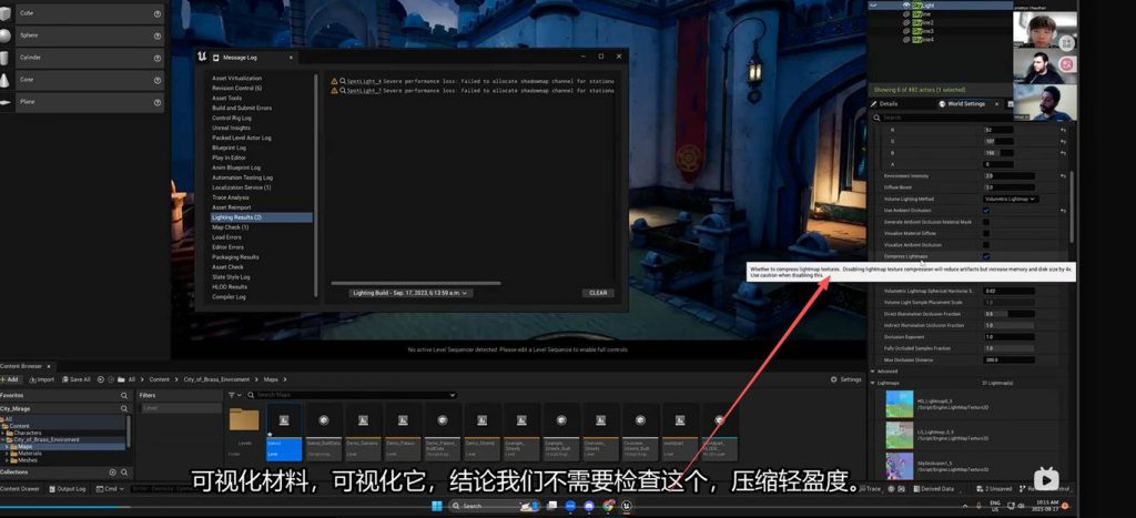 World setting的 compress light maps,这个很重要: